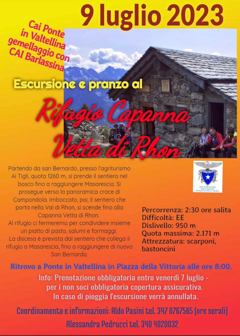 CAI Ponte in Valtellina organizza Escursione e pranzo al Rifugio Capanna 9 luglio