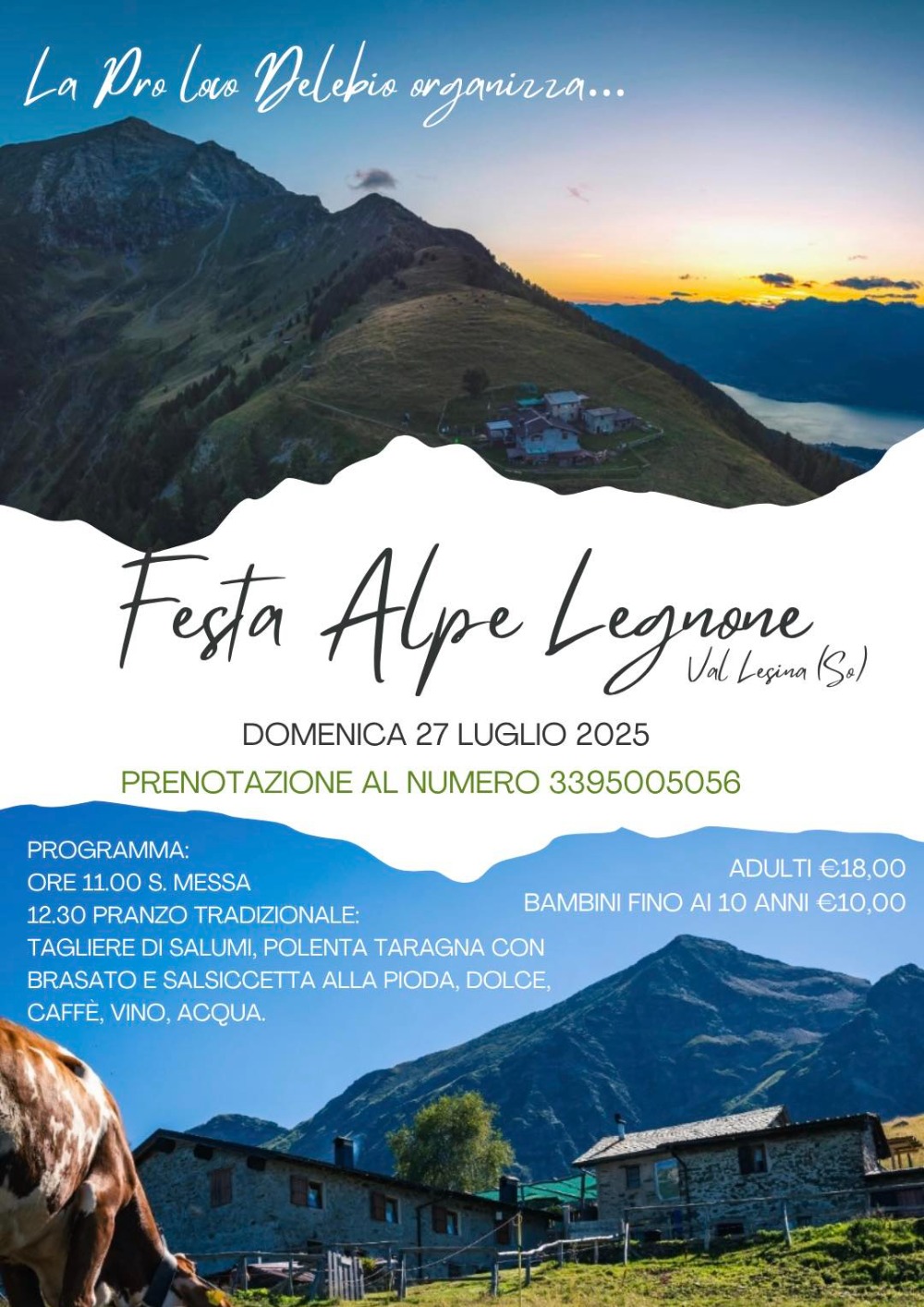 Una giornata in alpeggio tra natura, buon cibo e tradizione. L’appuntamento è fissato con la Festa dell’Alpe Legnone, organizzata dalla Pro Loco di Delebio.