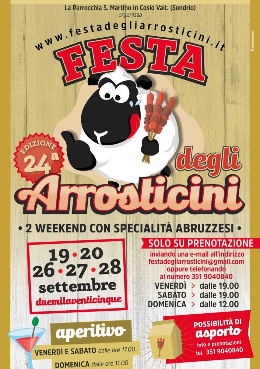 Se ti piace mangiare bene e vivere un’atmosfera festosa, non perderti la 24ª edizione della Festa degli Arrosticini, a Cosio Valtellino (SO). L’appuntamento è doppio, su due weekend consecutivi: 19-20-21 e 26-27-28 settembre 2025.