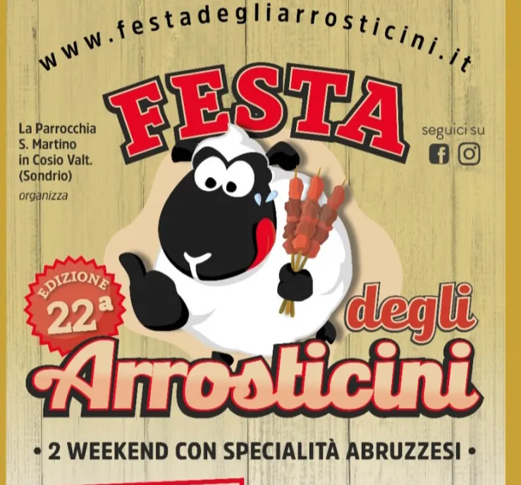 La Parrocchia di S. Martino di Cosio in Valtellino organizza la Festa degli arrosticini, 2 weekend con specialità abruzzesi.