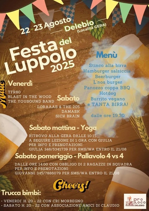 Due serate di musica, birra e divertimento in compagnia: torna a Delebio la Festa del Luppolo, con un programma pensato per giovani e famiglie 🍻🎉
