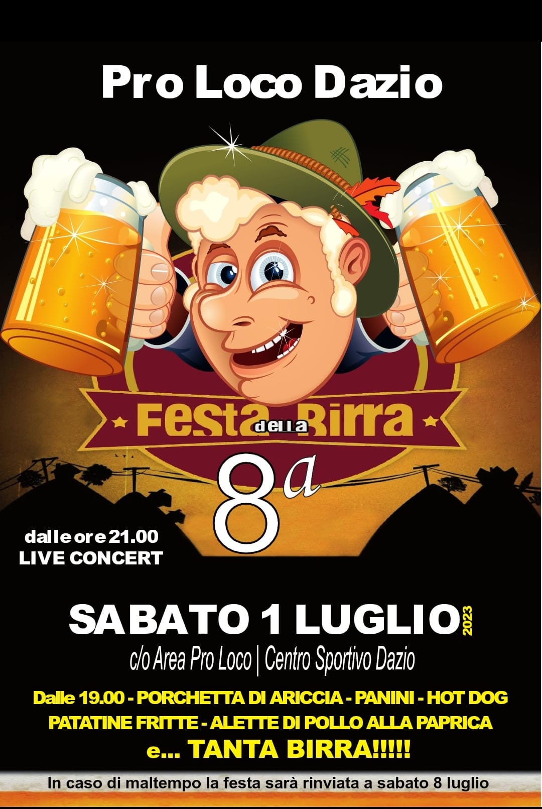 La Pro Loco di Dazio organizza per sabato 1 luglio la Festa della Birra che si terrà presso il Centro Sportivo