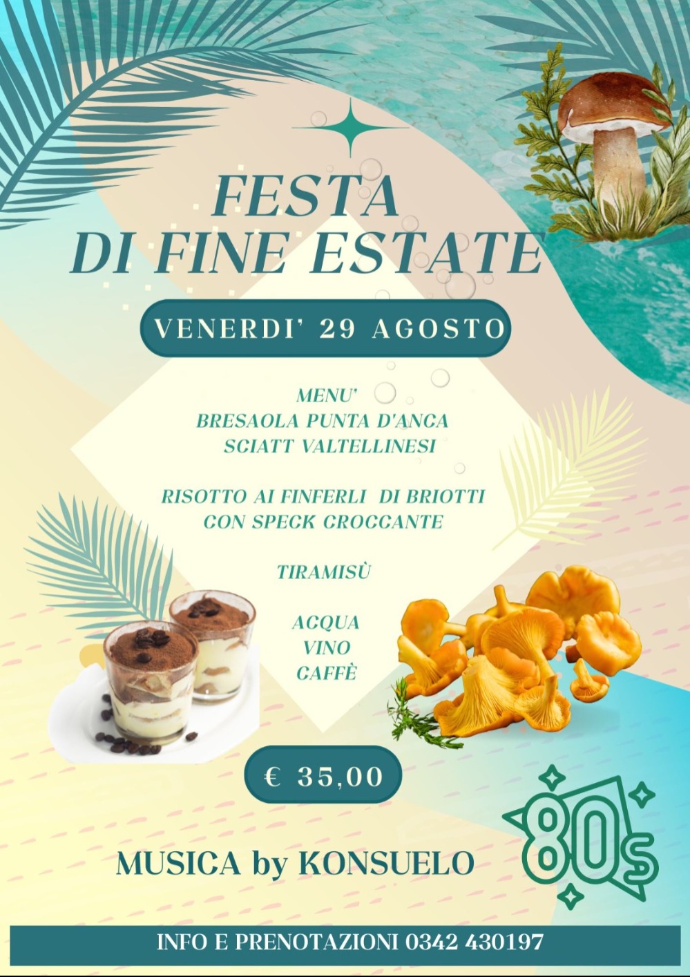Hai voglia di chiudere l’estate con una bella cena tra amici, piatti tipici e un tocco di musica anni ’80? Allora blocca la data: venerdì 29 agosto ti aspetta la Festa di Fine Estate al Ristorante Al Crap di Tresivio (SO) 🍽️🎶