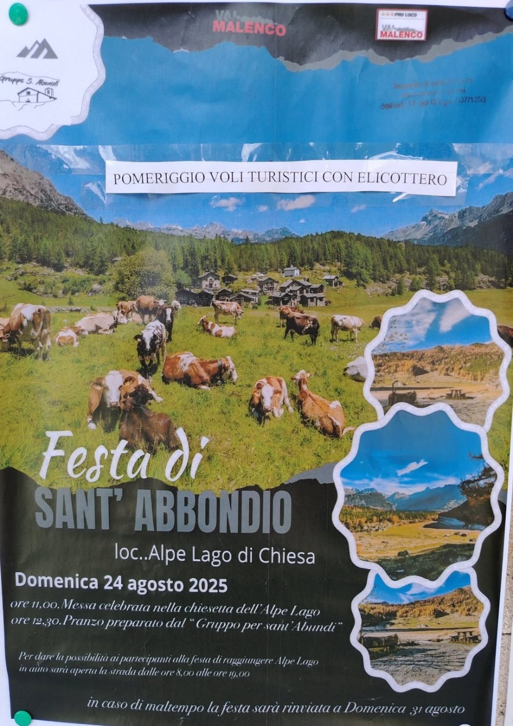 Hai voglia di passare una domenica diversa, tra natura, tradizioni e piatti genuini della valle? L’appuntamento perfetto è all’Alpe Lago di Chiesa (SO), dove si celebra la Festa di Sant’Abbondio, un momento molto sentito, immerso nella quiete dell’alta Valmalenco, tra pascoli verdi e baite in pietra.