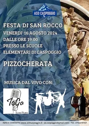 ASD Caspoggio ti invita anche quest'anno alla Festa di San Rocco che si terrà venerdì 16 agosto presso le scuole elementari di Caspoggio.