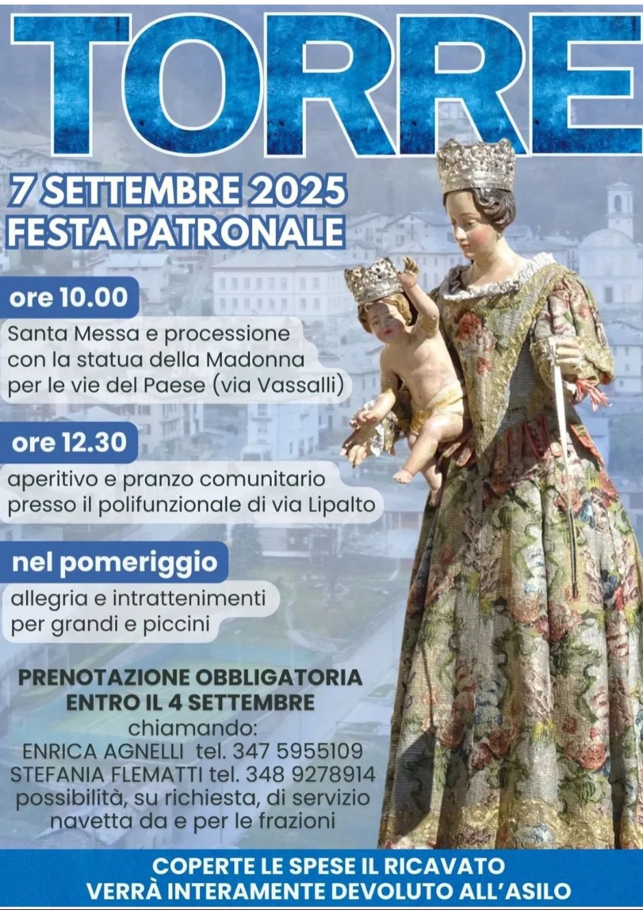 Tradizione e comunità si incontrano nella Festa Patronale di Torre il 7 settembre, un appuntamento che ogni anno richiama residenti e visitatori.