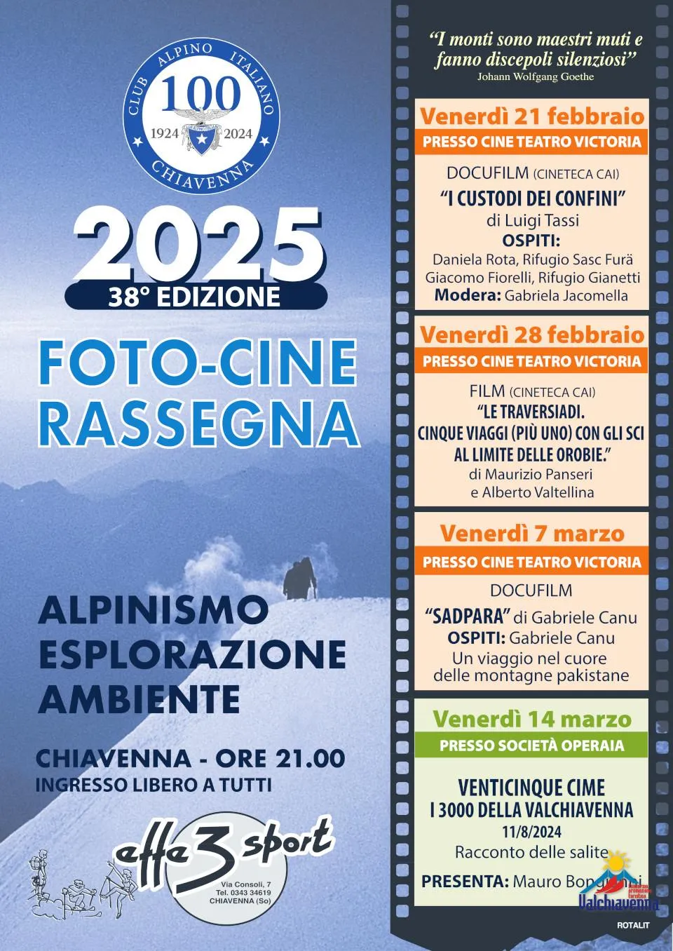 Foto-cine rassegna Alpinismo, Esplorazione Ambinete a Chiavenna 21 e 28 febbraio, 7 e 14 marzo