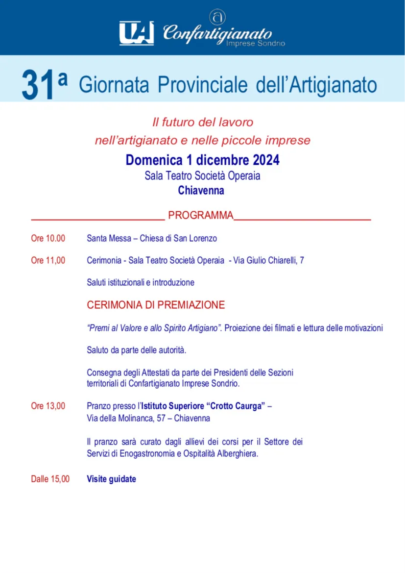 Giornata Provinciale dell'Artigianato a Chiavenna 1 dicembre
