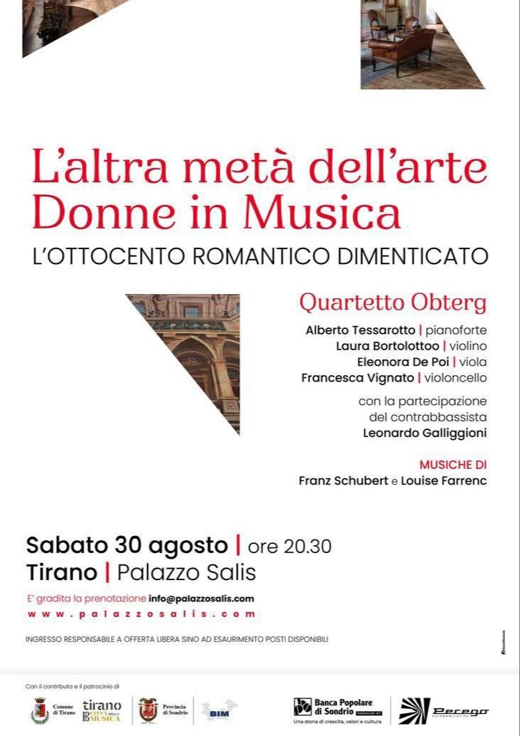 Un luogo ricco di storia, musiche raffinate e un’occasione per riscoprire grandi compositrici dimenticate: sabato 30 agosto il Palazzo Salis di Tirano (SO) ospita il concerto "L’altra metà dell’arte – Donne in Musica", un viaggio sonoro nell’Ottocento romantico tutto al femminile.
