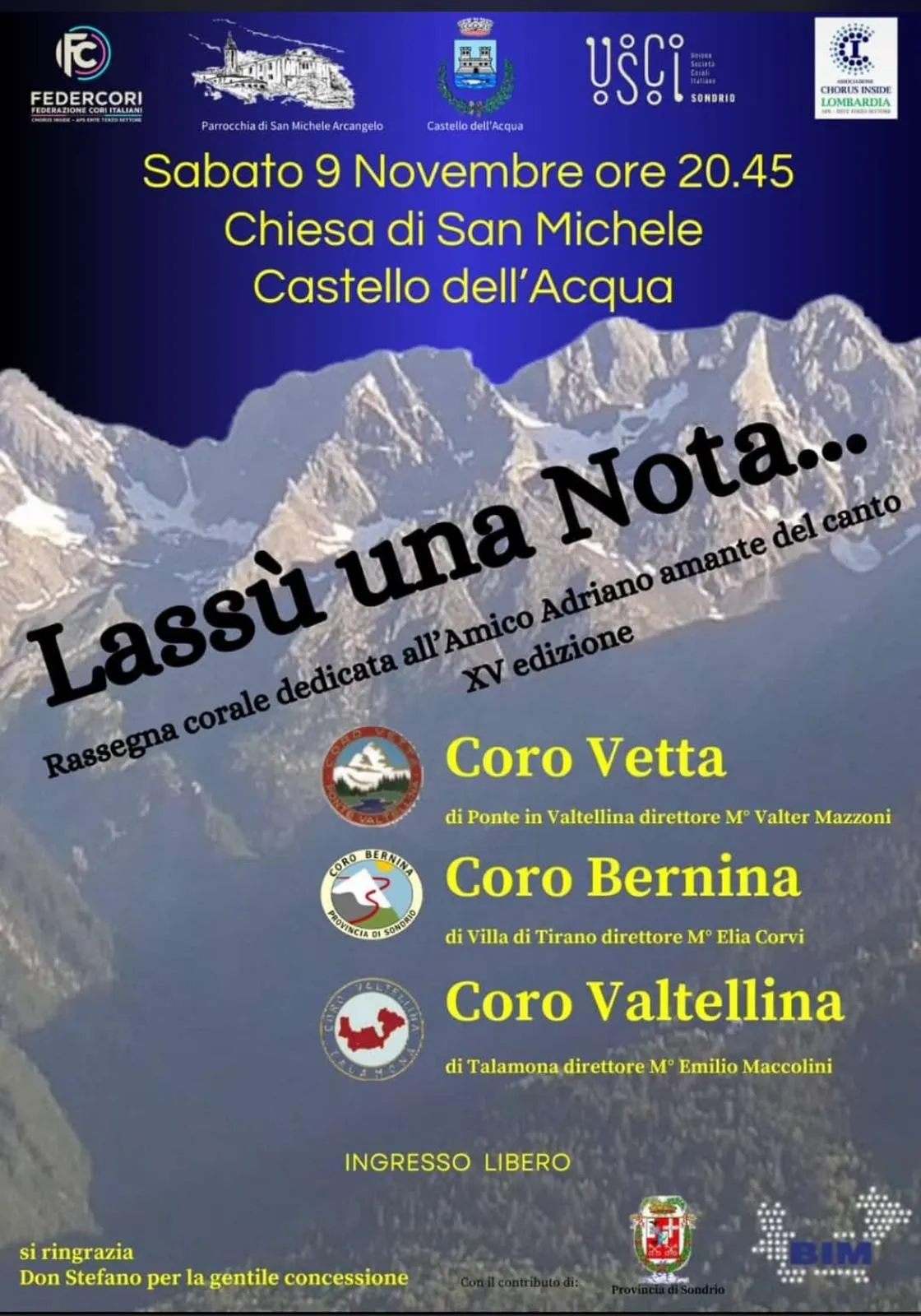 Lassù una nota, rassegna corale, 9 novembre a Castello dell'Acqua