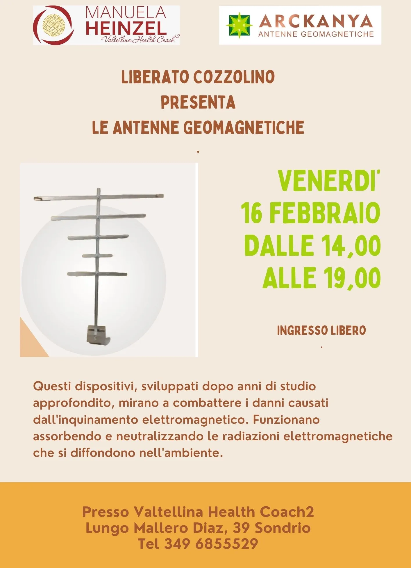 Bibo Cozzolino del gruppo Save my Earth, il 16 febbraio dalle 14 alle 19 presenterà a Sondrio un rivoluzionario strumento: l'antenna geomagnetica.