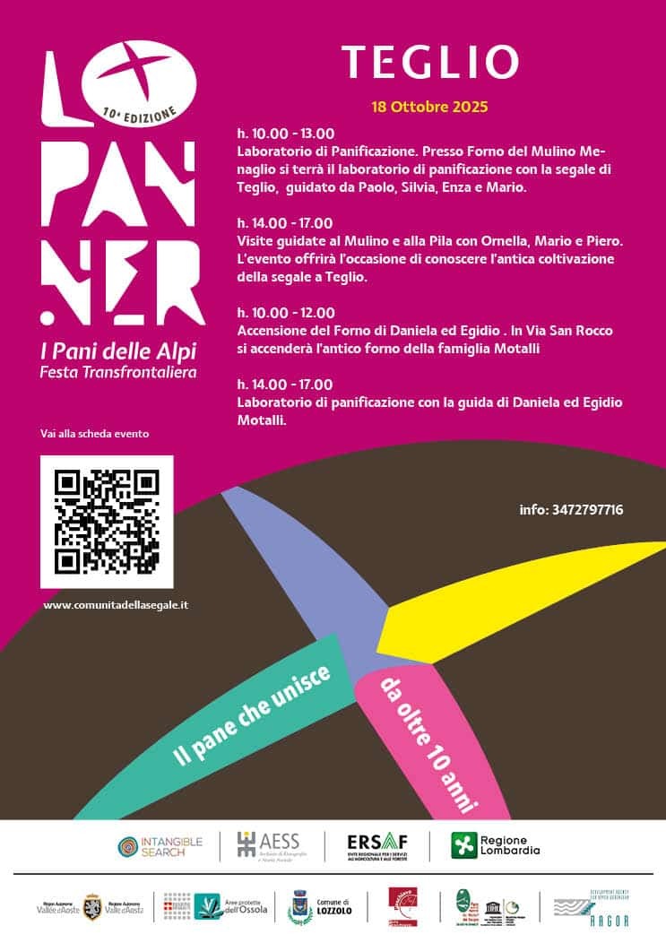Sabato 18 ottobre 2025 torna a Teglio (SO) Lo Pan Ner – I pani delle Alpi, la festa transfrontaliera dedicata alla panificazione tradizionale.