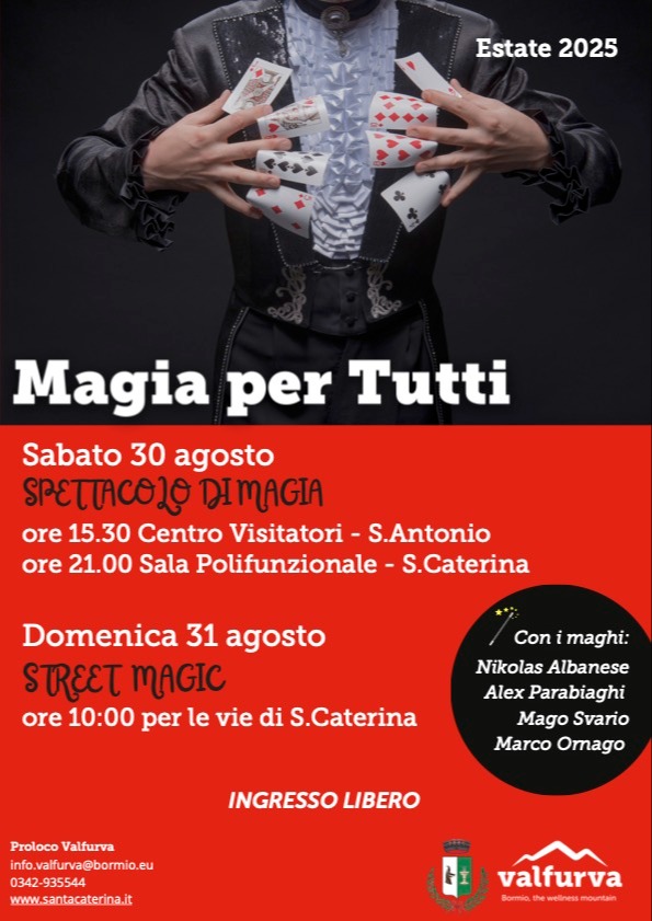La Proloco Valfurva propone due giorni con artisti che porteranno stupore e sorrisi, tra spettacoli teatrali e magie itineranti per le vie del paese. E tutto a ingresso libero.