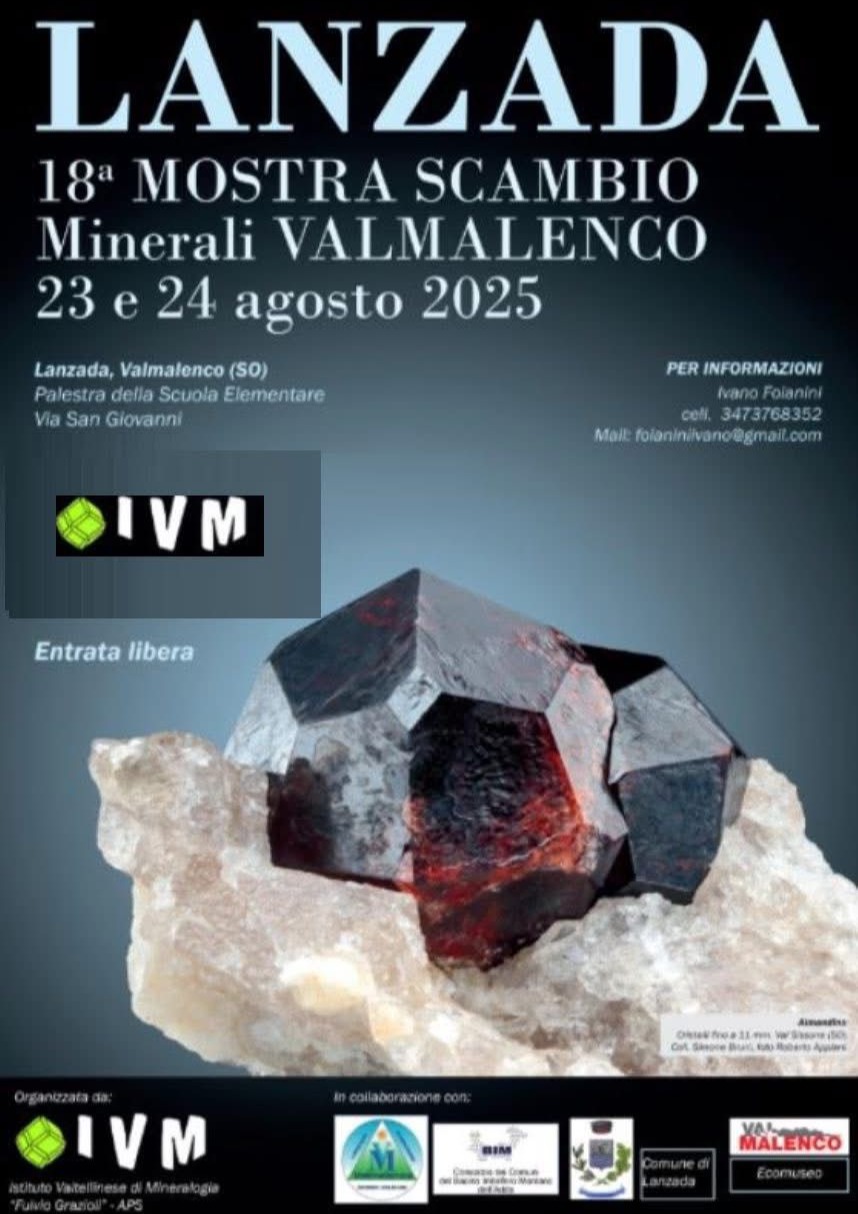 A Lanzada (SO), sabato 23 e domenica 24 agosto 2025, torna l'appuntamento con la 18ª Mostra Scambio Minerali Valmalenco, organizzata dall’Istituto Valtellinese di Mineralogia “Fulvio Grazioli” – IVM. Due giornate dedicate allo scambio e alla passione per i minerali, un'occasione perfetta per incontrare collezionisti, esperti e curiosi provenienti da tutta Italia.