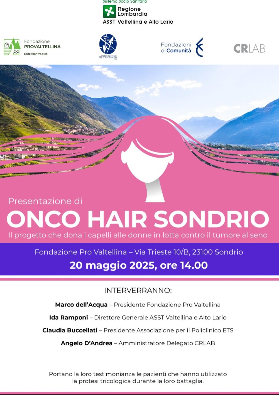 "ONCO HAIR SONDRIO" è la presentazione ufficiale di un progetto che offre protesi tricologiche gratuite alle donne che stanno affrontando trattamenti oncologici. Un’occasione per conoscere da vicino chi lavora ogni giorno per fare davvero la differenza sul territorio.