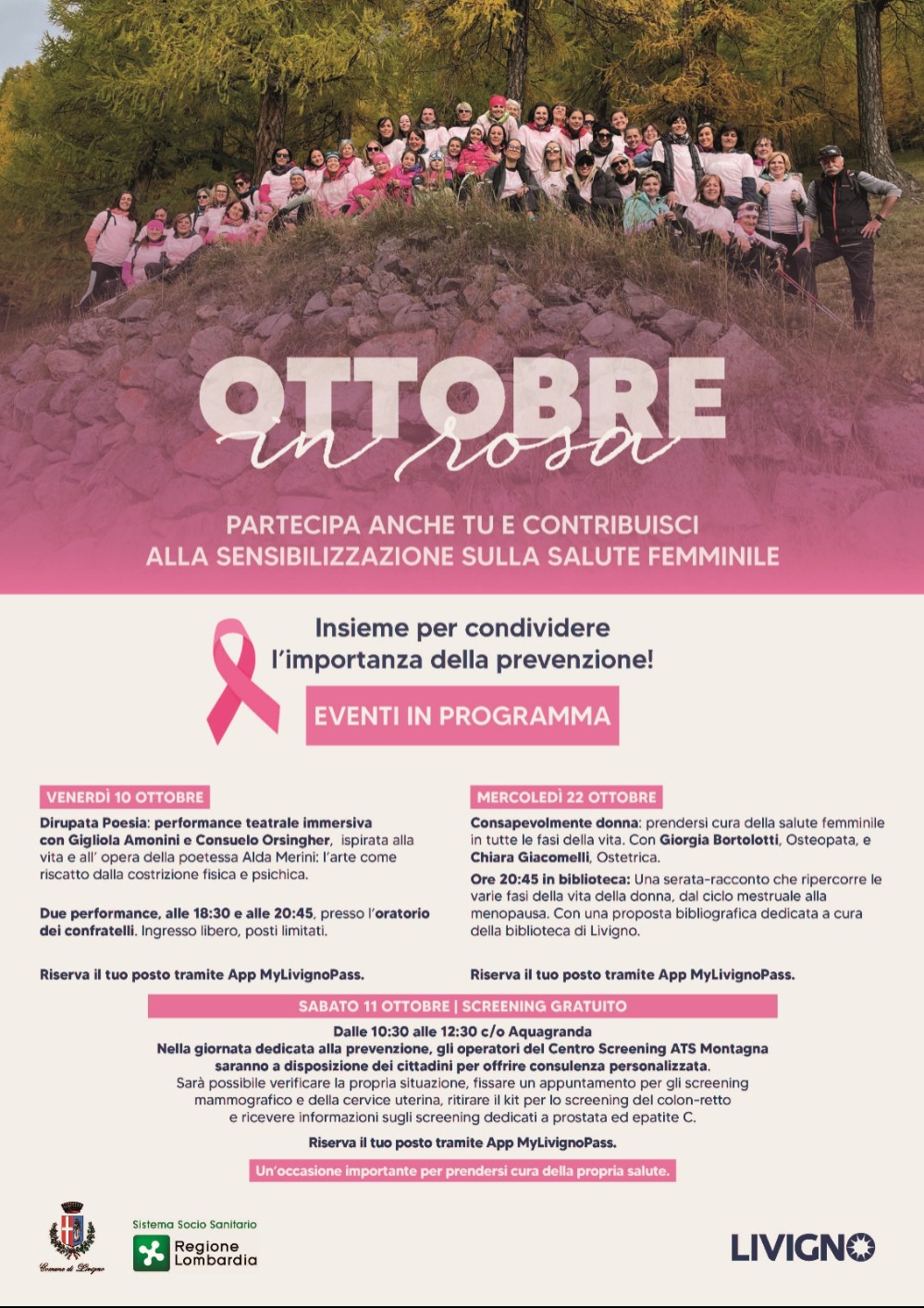🎀 Partecipare agli eventi di Ottobre in Rosa non significa solo informarsi, ma anche sostenere una cultura della prevenzione, valorizzare il territorio e prendersi del tempo per sé stesse. Livigno (SO) dimostra ancora una volta come anche un piccolo comune di montagna possa essere protagonista attivo nella promozione della salute pubblica.