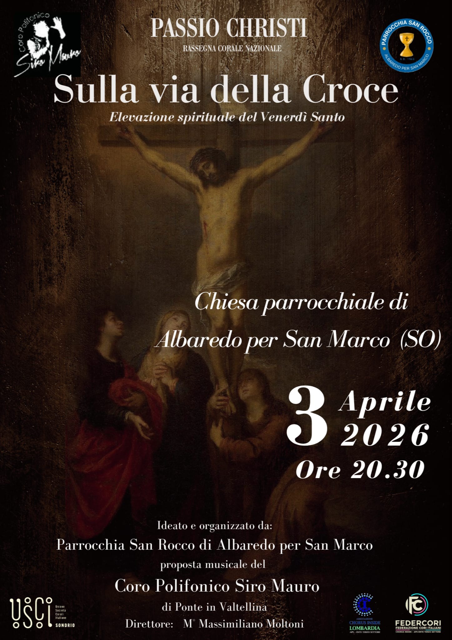 Ideato e organizzato da Parrocchia San Rocco di Albaredo per San Marco, con proposta musicale del Coro Polifonico Siro Mauro di Ponte in Valtellina. Direttore: M° Massimiliano Moltoni.