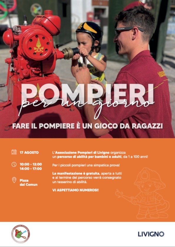 Chi non ha mai sognato, almeno una volta, di indossare il casco e diventare pompiere? 🚒🔥 Domenica 17 agosto a Livigno (SO) puoi farlo davvero, grazie all'iniziativa “Pompieri per un giorno”, organizzata dall’Associazione Pompieri di Livigno.