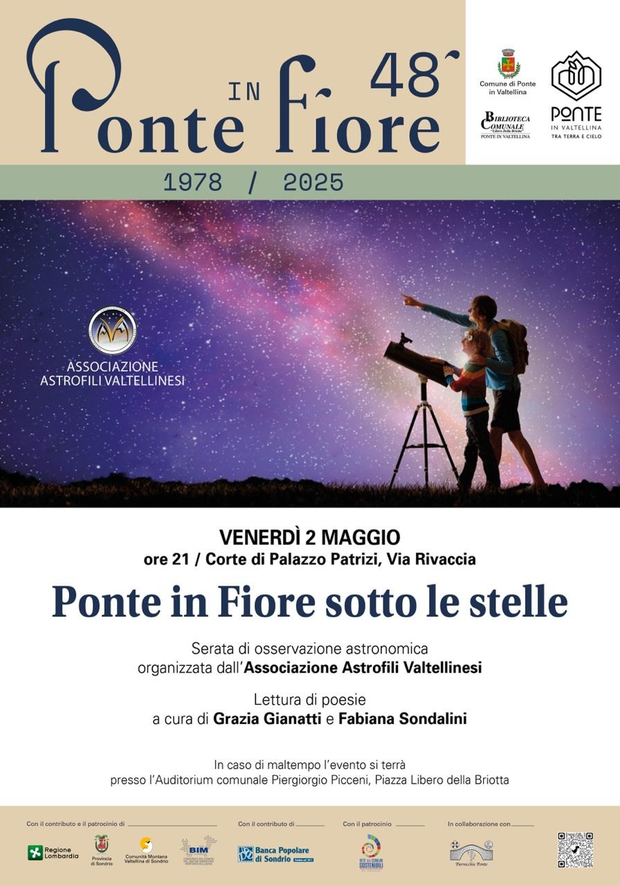 Evento organizzato da Associazione Astrofili Valtellinesi, con lettura di poesie a cura di Grazia Gianatti e Fabiana Sondalini.