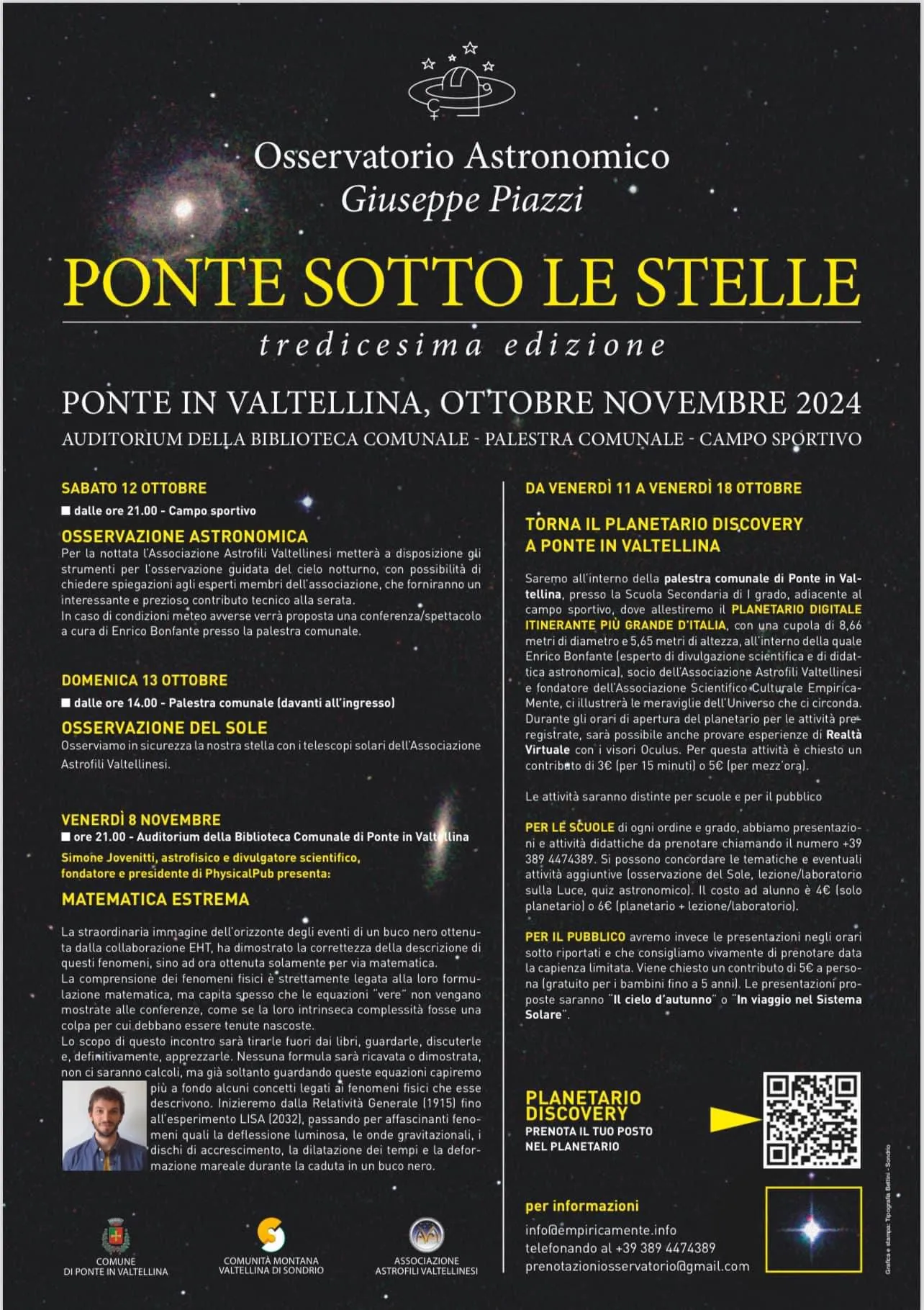 Tredicesima edizione Ponte sotto le stelle: dall'11 al 18 ottobre e 8 novembre a Ponte in Valtellina
