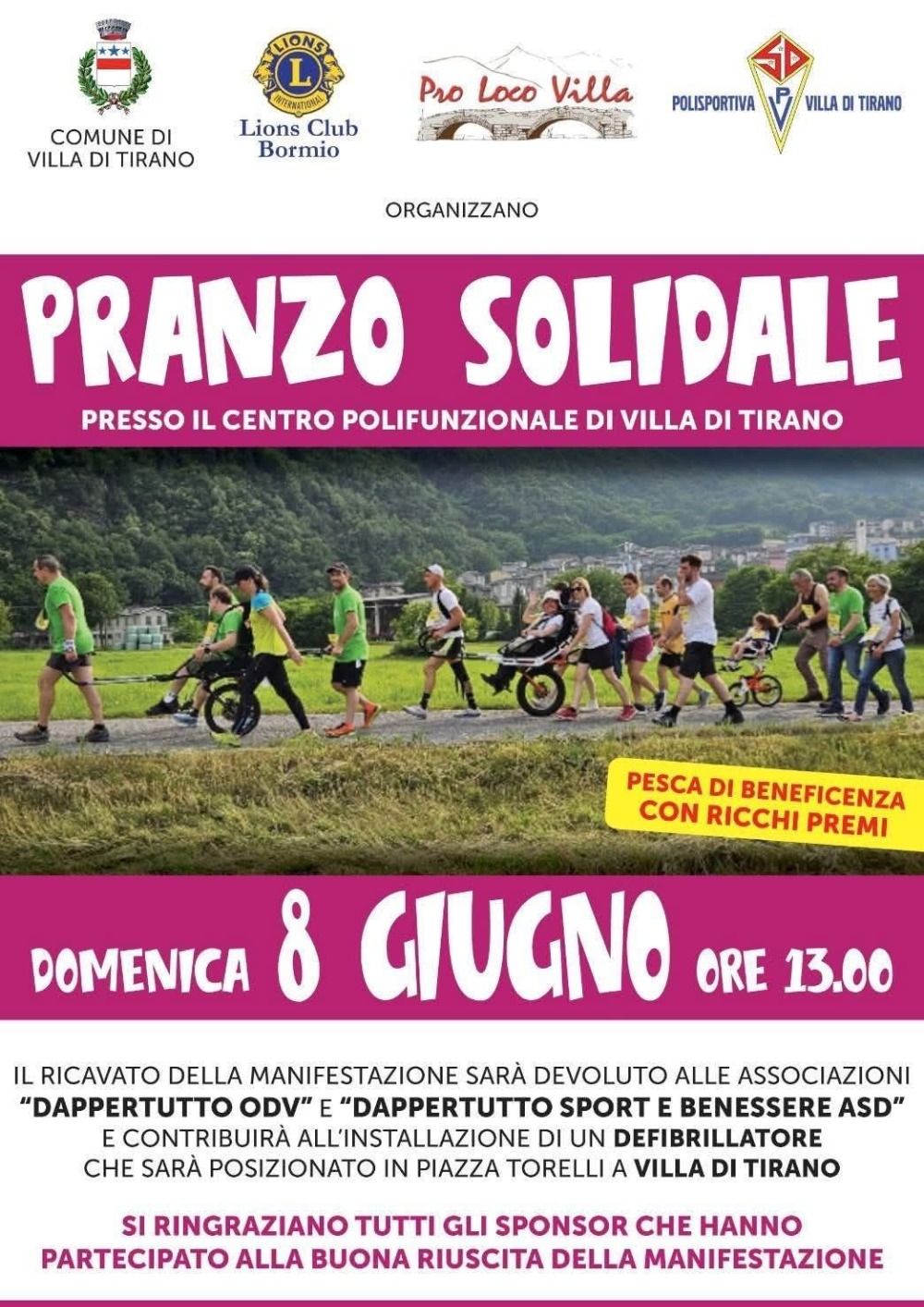 Il Centro Polifunzionale di Villa di Tirano (SO) ospita il Pranzo Solidale, organizzato da Comune, Lions Club Bormio, Pro Loco Villa e Polisportiva Villa di Tirano. Un’occasione per stare insieme, mangiare bene e aiutare chi ha bisogno.