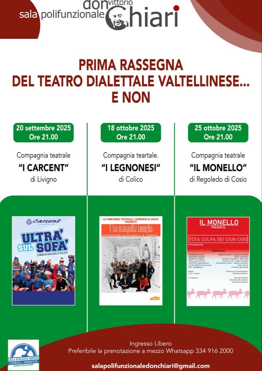 Tre appuntamenti di teatro dialettale valtellinese con compagnie locali: