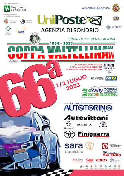 L'Automobile Club Sondrio organizza la 66 edizione de Rally Coppa Valtellina 2023 1 e 2 luglio a Sondrio