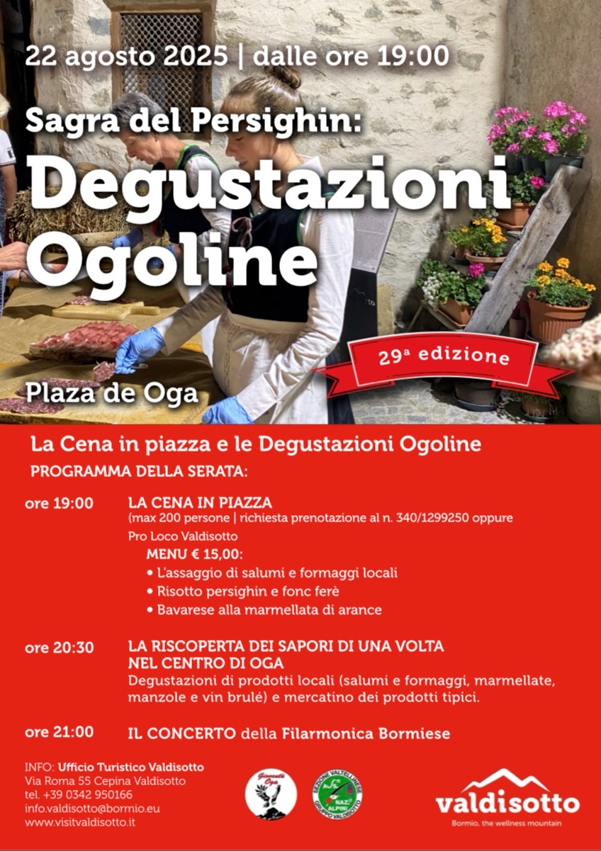 Non è estate a Oga (SO) senza la Sagra del Persighin e le sue mitiche Degustazioni Ogoline 🍄. Un evento che da anni richiama tantissima gente per un mix perfetto di tradizioni, sapori locali e una serata da condividere sotto le stelle.