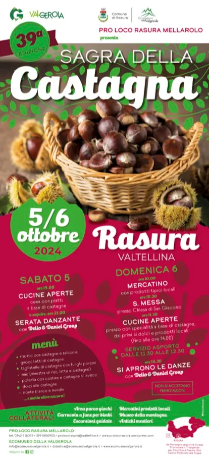 A Rasura, 5 e 6 ottobre, Sagra della Castagna, giunta alla 39^ edizione.