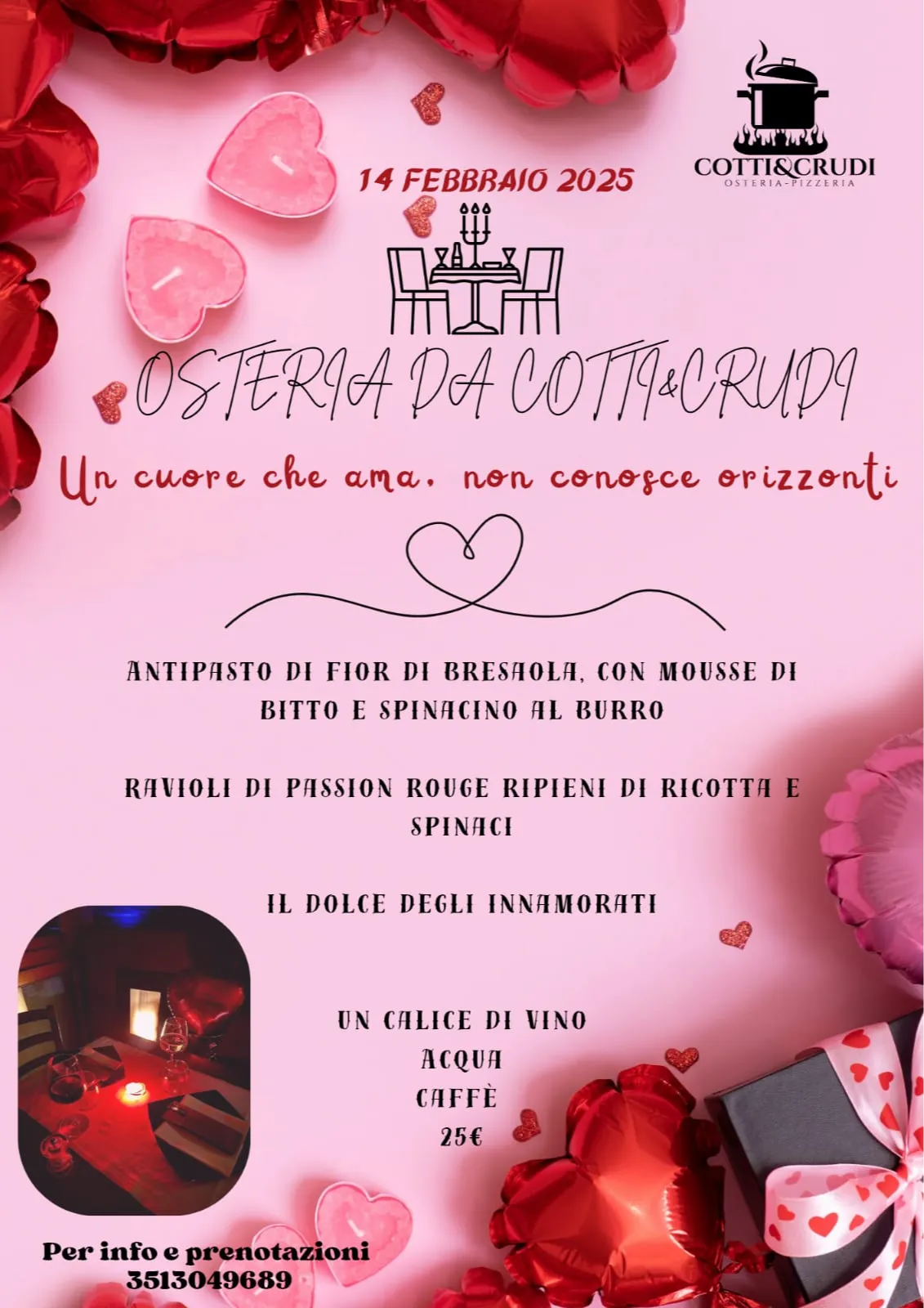L'Osteria da Cotti&Crudi di Albosaggia ti propone uno speciale menù per S. Valentino.
