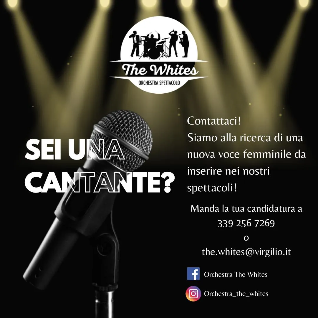L'orchestra spettacolo The Whites formata dalla Famiglia Bianchi di Traona (SO) è alla ricerca di una nuova voce femminile da inserire nel proprio team per portare energia e passione in serate musicali dal vivo in sagre di paese e locali da ballo.