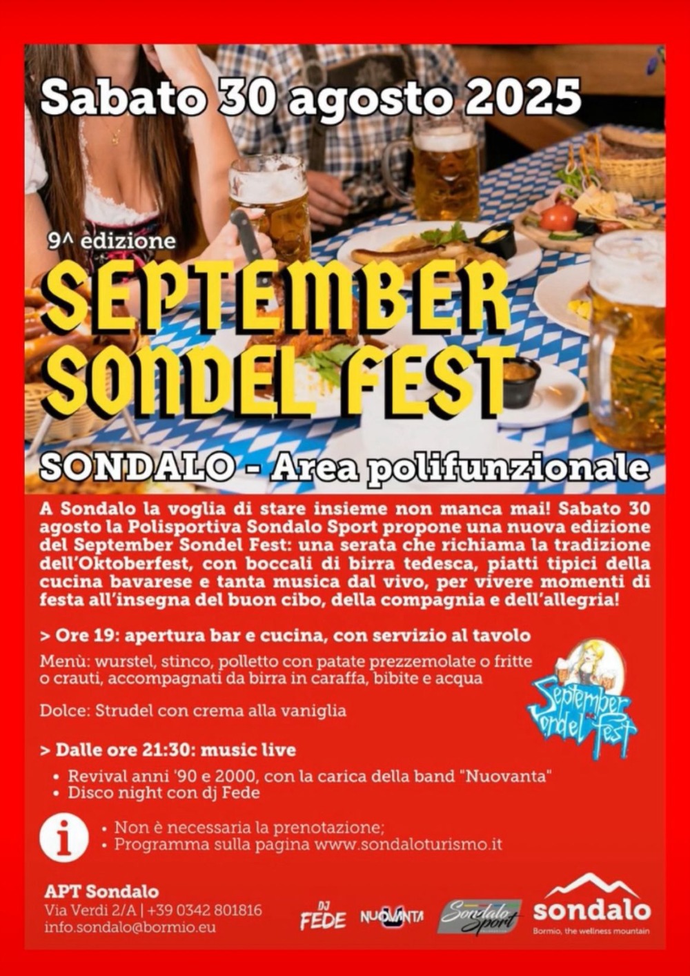 Torna il September Sondel Fest con la sua 9ª edizione, una vera festa in stile Oktoberfest, organizzata da Sondalo Sport.