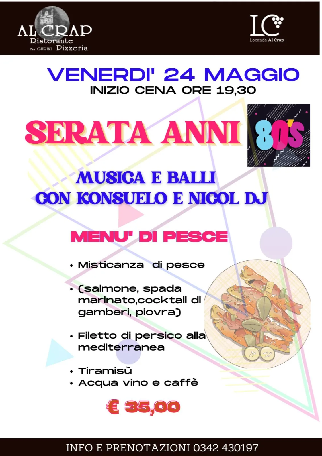 Ristorante Al Crap di Tresivio organizza Serata anni '80, venerdì 24 maggio.