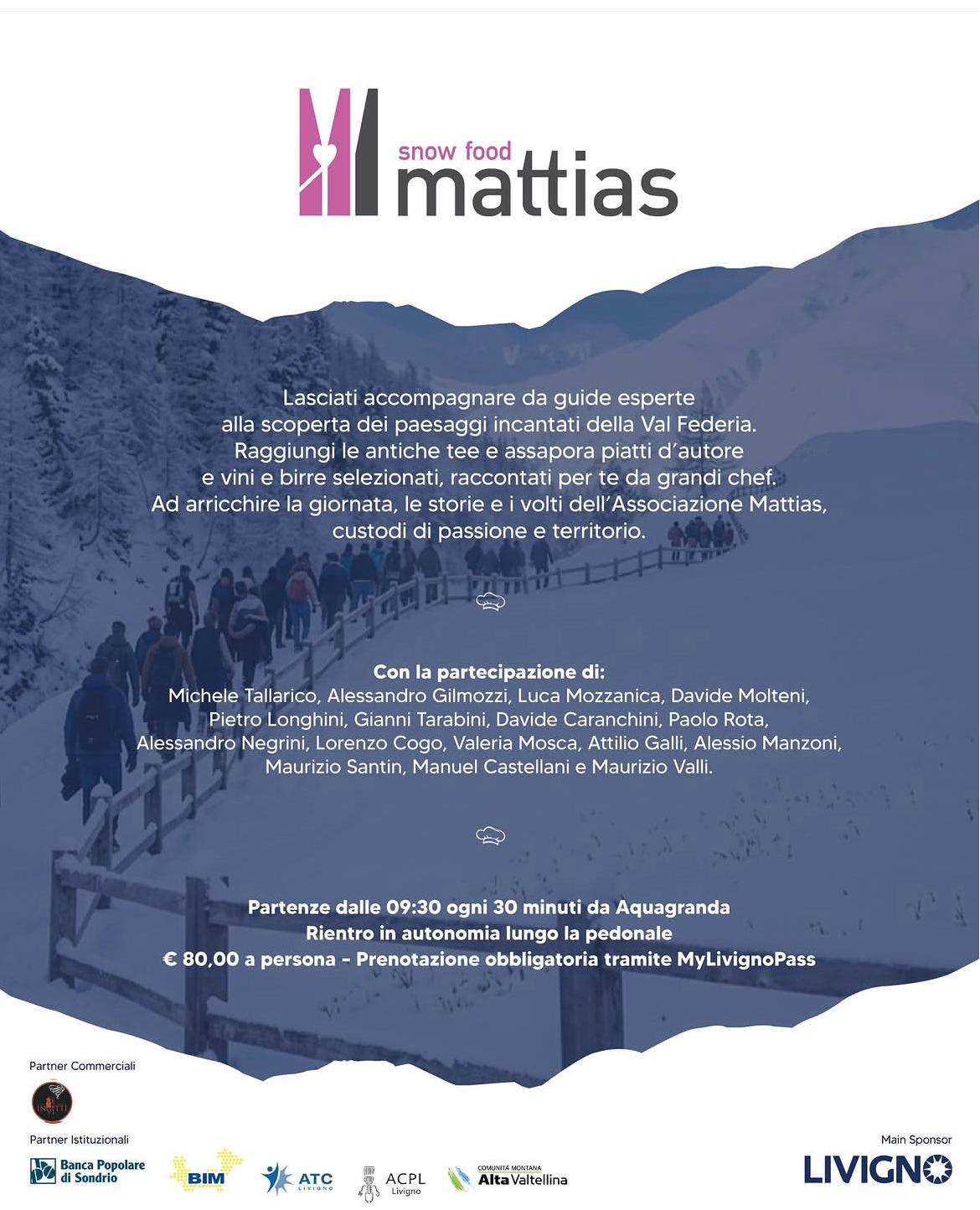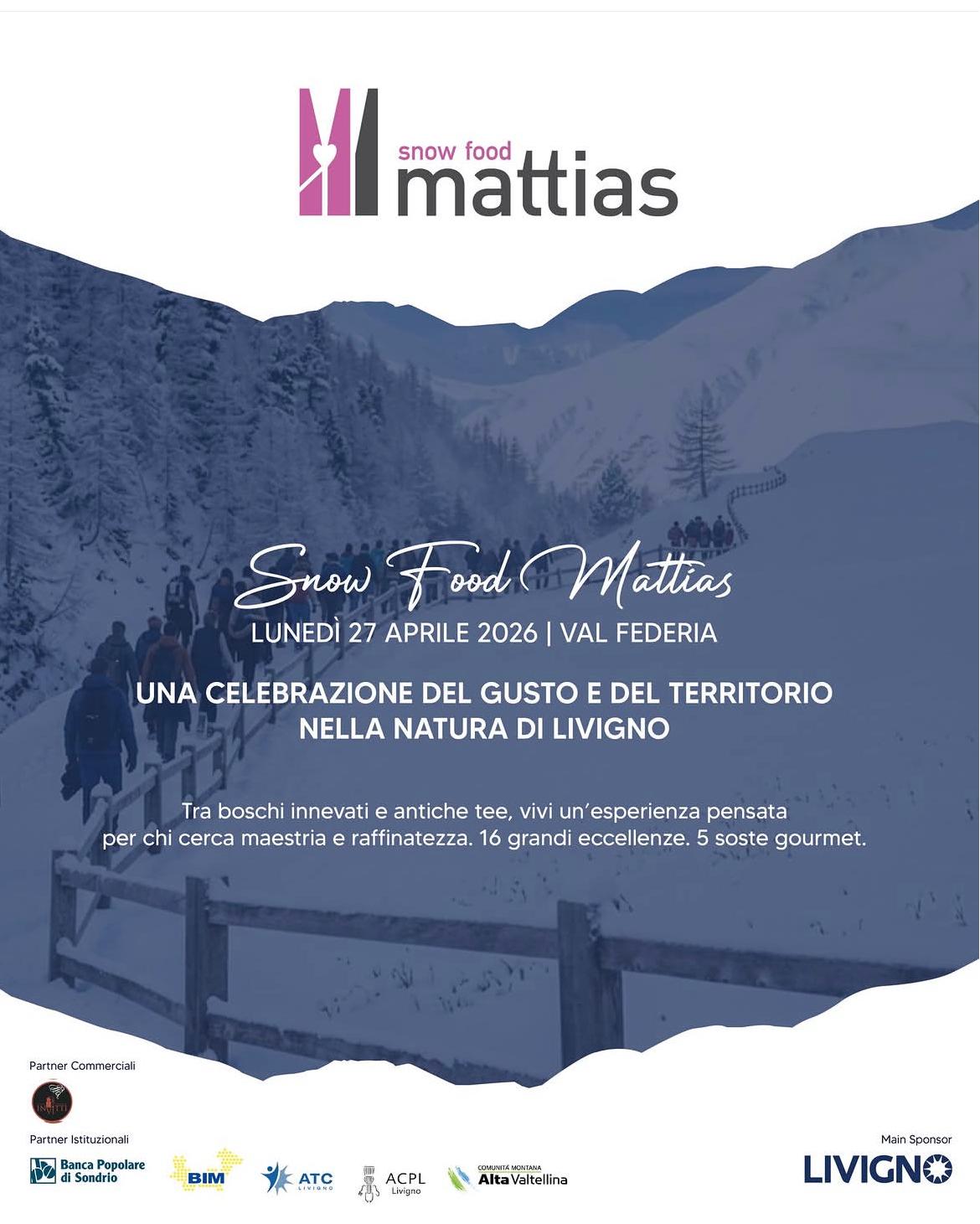 Torna, il 27 aprile a Livigno, Snowfood Mattias, l’esperienza immersiva ideata e promossa da Associazione Mattias che unisce cammino, racconto del territorio ed eccellenza gastronomica.