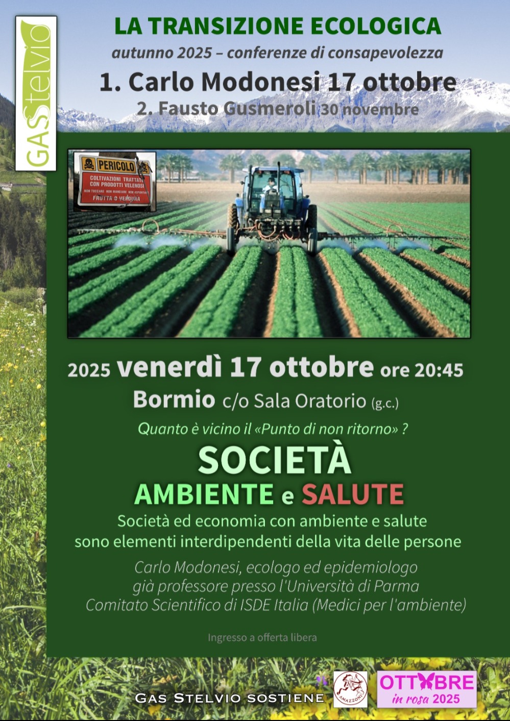 A Bormio arriva un incontro che mette sul tavolo domande urgenti e fondamentali per il nostro futuro. Il protagonista sarà Carlo Modonesi, ecologo ed epidemiologo, già docente all'Università di Parma e membro del Comitato Scientifico di ISDE Italia (Medici per l’ambiente).