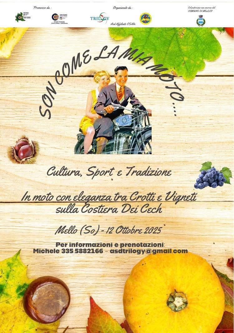 Domenica 12 ottobre 2025, perché a Mello (SO) arriva “Son come la mia moto…”, un evento che unisce cultura, sport e tradizione nella Costiera dei Cech.