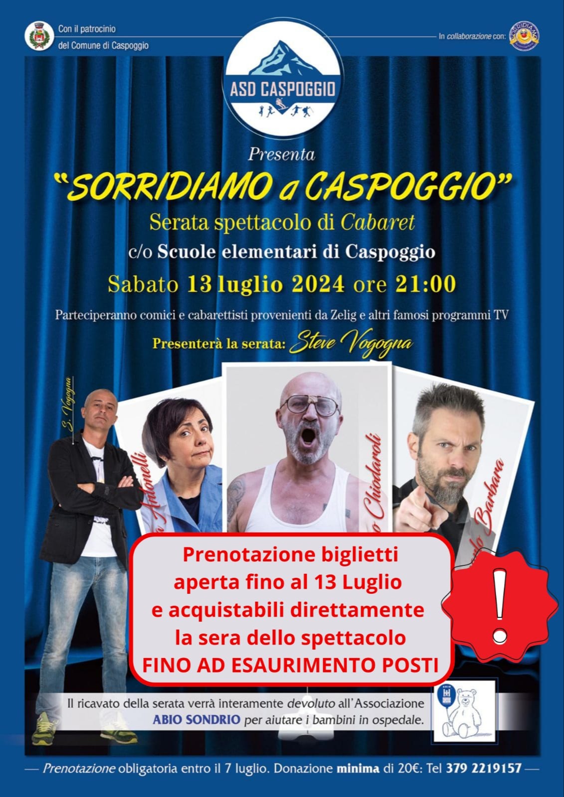 ASD Caspoggio ha organizzato"Sorridiamo a Caspoggio", una serata spettacolo di Cabaret il cui ricavato andrà versato in beneficenza.