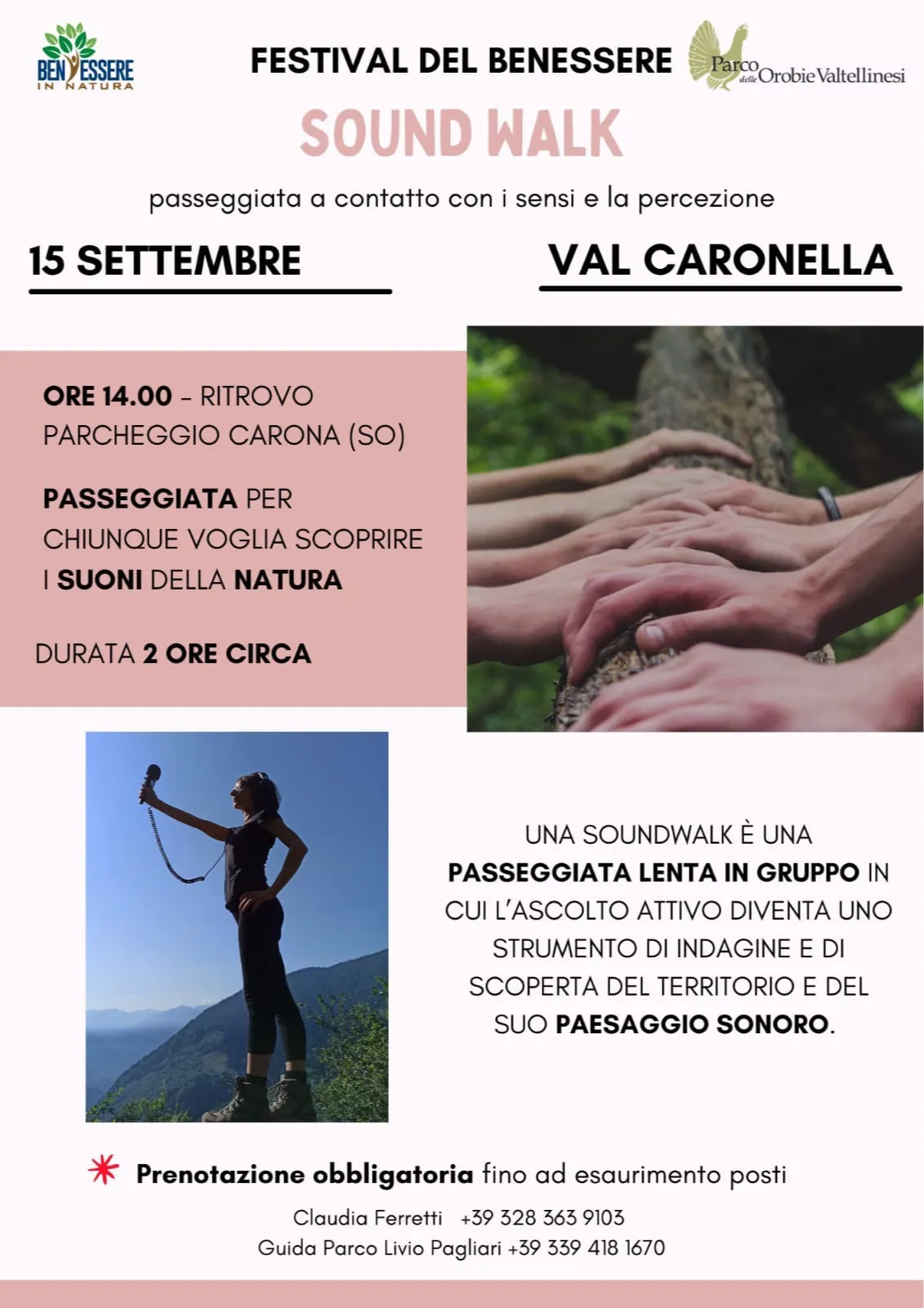 In occasione del Festival del Benessere, Sound walk, 15 settembre a Teglio in Val Caronella