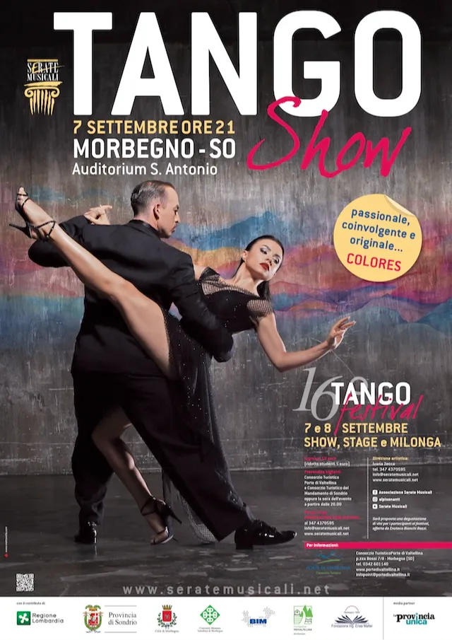 Al 16° TANGOfestival di Morbegno con Sophie Sperling y Francis Aguilar, straordinaria coppia di ballerini elegante e raffinata, presenta COLORES uno show intrigante, seducente e passionale che descrive le molteplici sfaccettature del tango. Gli artisti con uno stile proprio accompagnano il pubblico a riconoscere come la musica e la poesia del tango non siano solo un’eredità del passato ma una realtà più che mai viva e in evoluzione. Morbegno ancora una volta si colora di rosso come la passione dei tangueros che anno dopo anno si danno appuntamento presso l’Auditorium Sant’Antonio per ornare di meravigliosi passi e trasporto porteño gli scorci del suo incantevole Chiostro.