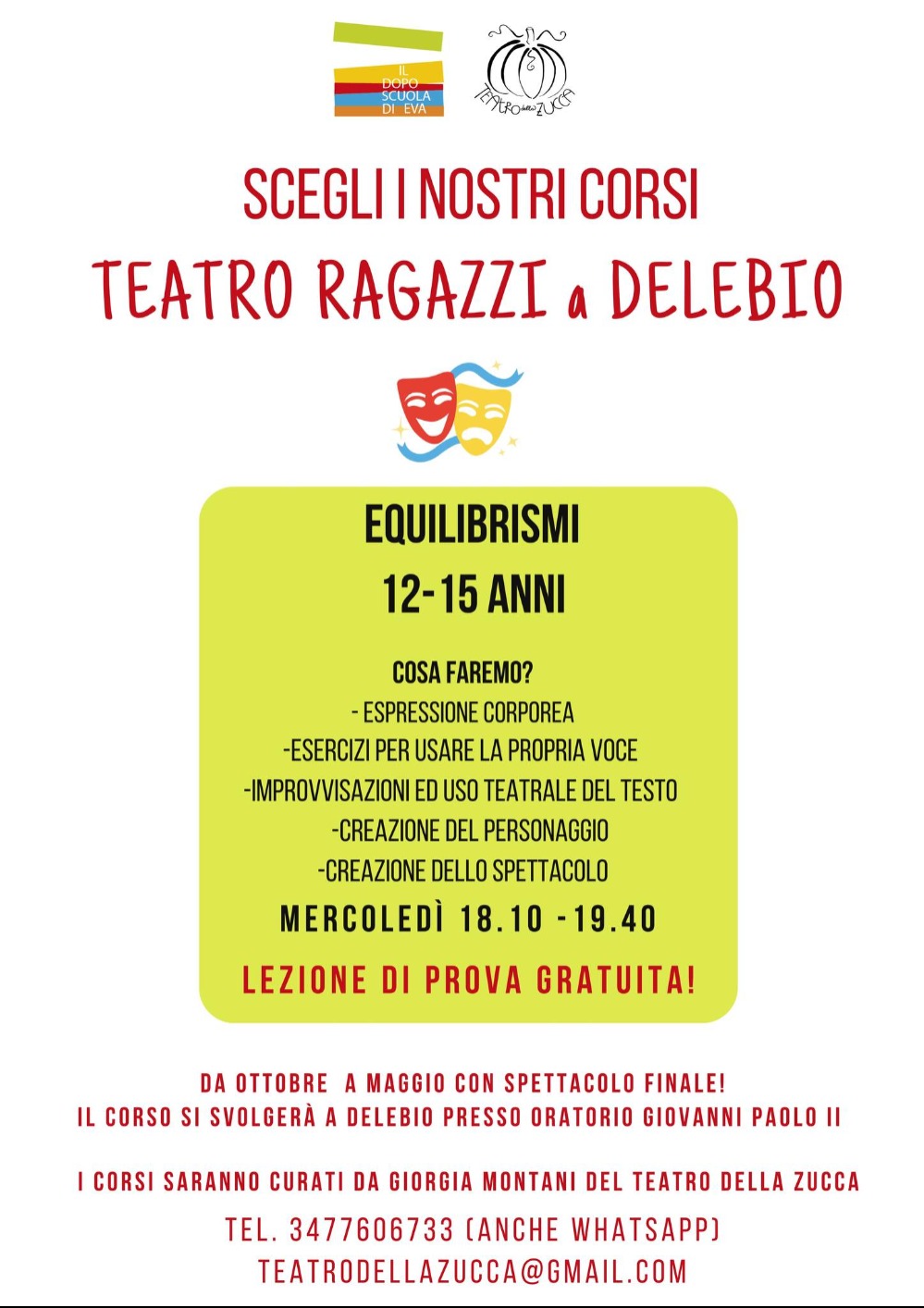 Da ottobre a maggio, con spettacolo finale, parte a Delebio (SO) il corso di teatro ragazzi Equilibrismi, pensato per giovani dai 12 ai 15 anni.