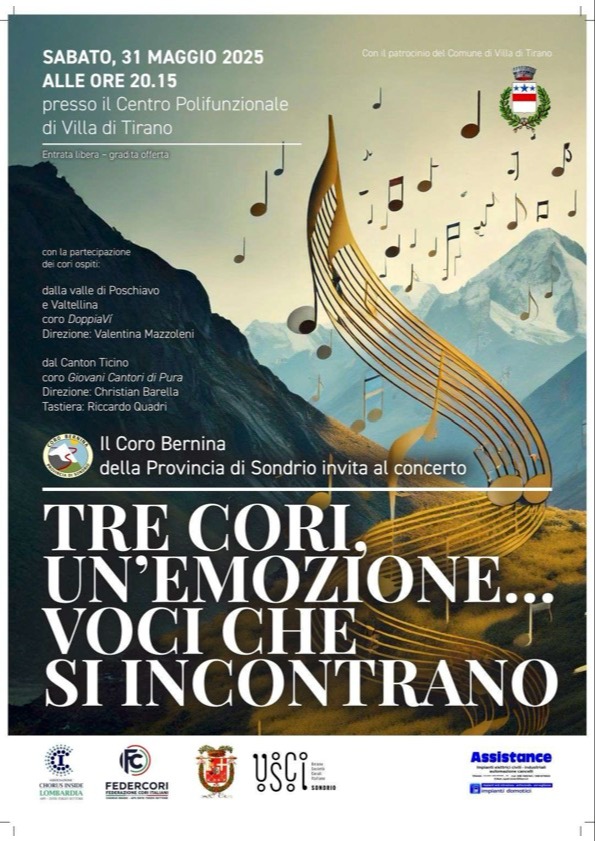 Quando tre cori si incontrano in un unico concerto, il risultato è qualcosa che lascia il segno. Un viaggio tra le voci, che abbraccia la Valtellina e attraversa il Canton Ticino, per una serata tutta da ascoltare e vivere.