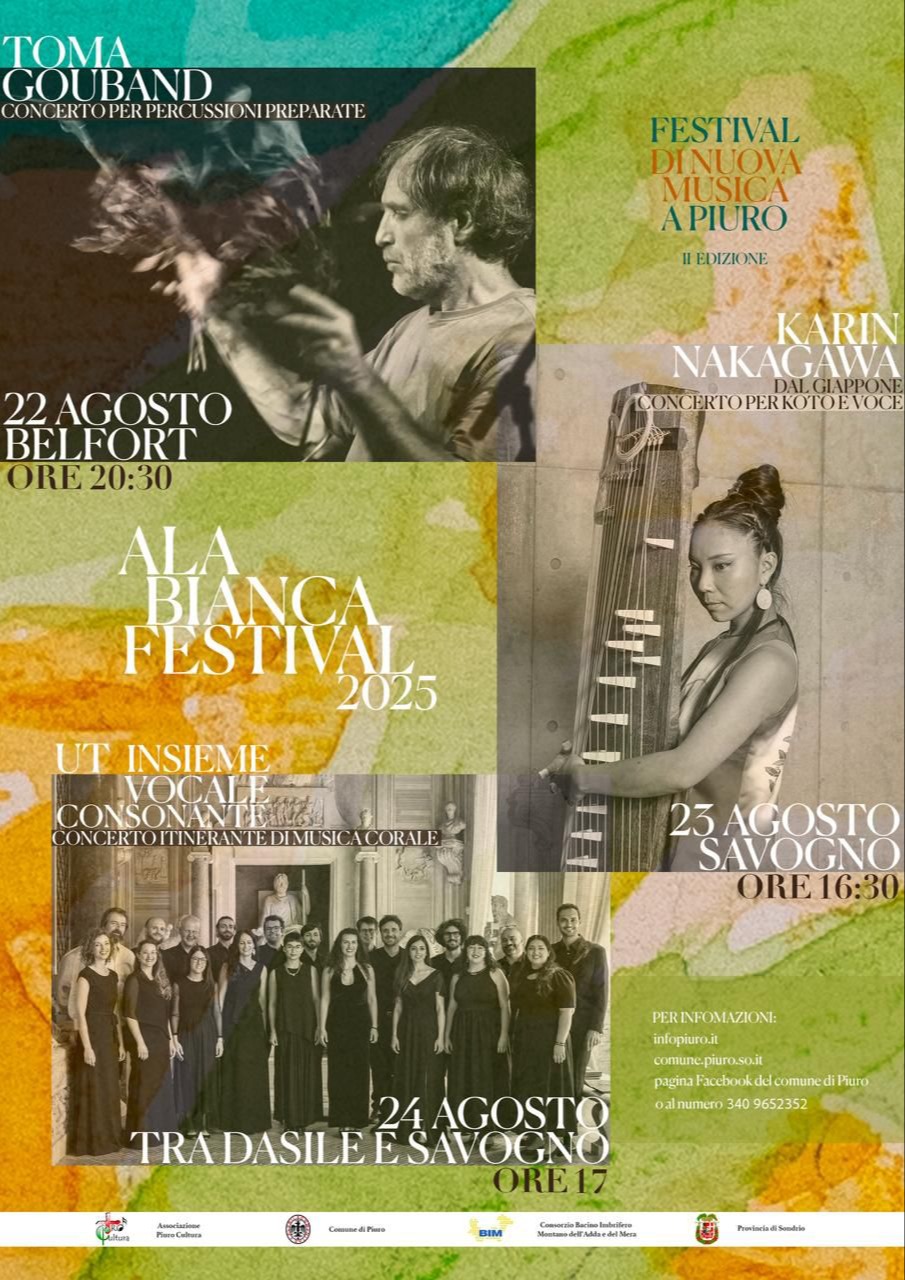 La seconda edizione dell’Ala Bianca Festival, sostenuta dal Comune di Piuro e dall’Associazione Piuro Cultura, propone un’esperienza unica tra musica contemporanea, improvvisazione, tradizione e ascolto profondo.