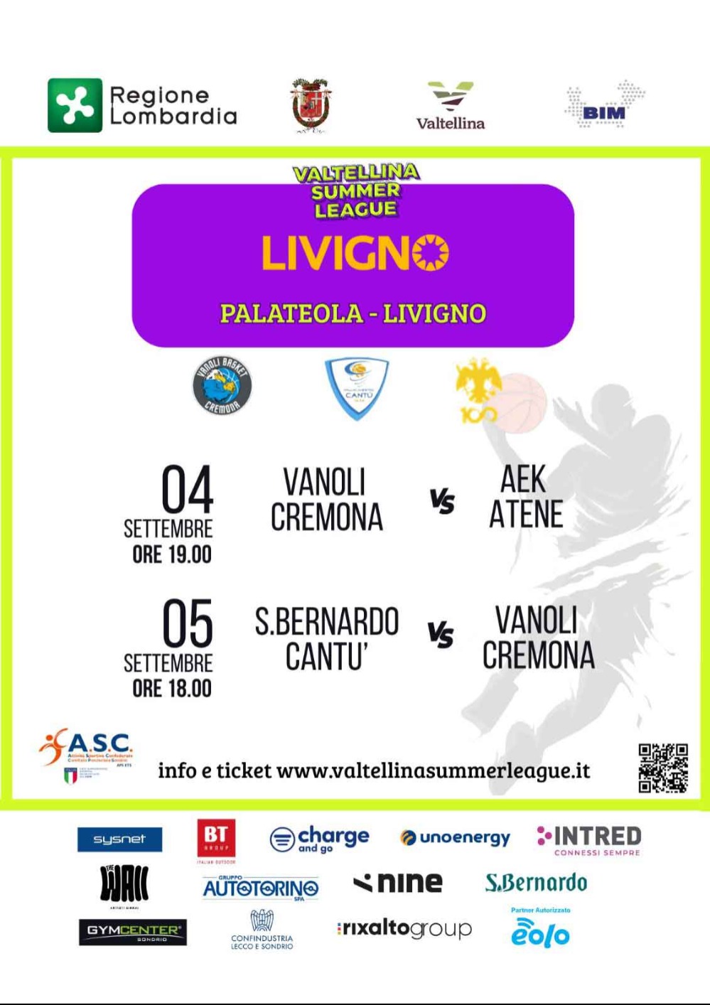 Due giornate di sport spettacolo: giovedì 4 e venerdì 5 settembre 2025 il Pala Teola di Livigno (SO) ospita la Valtellina Summer League, il torneo che porta in alta quota squadre di altissimo livello della Serie A italiana e del campionato greco.