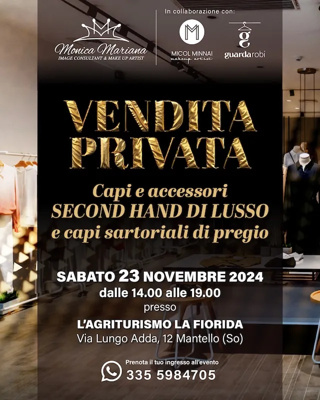Sabato 23 novembre, l’Agriturismo La Fiorida di Mantello aprirà le sue porte per un evento unico nel suo genere: Vendita Privata di capi e accessori di lusso second hand, arricchita da pezzi sartoriali di grande pregio.