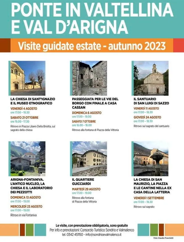 Un calendario di visite guidate esplorative tra le meraviglie di Ponte in Valtellina e la suggestiva Val D'Arigna.